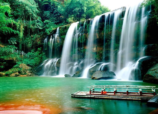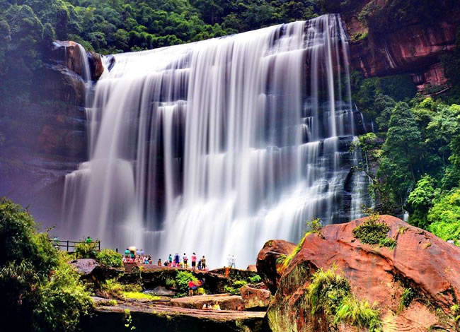 早餐后前往當地社會商品零售企業(yè)自由活動并領精美紀念品,名特產品(較為著名云上赤水泰和乳膠、逸可瑞斯乳膠等,主要銷售乳膠制品),自由活動后前往【赤水大瀑布】欣賞美譽中國的簾狀瀑布典型代表中洞瀑布。觀氣勢恢弘的赤水大瀑布(寬81米,高76米),是亞洲最大的瀑布,也是“世界丹霞第一瀑”,瀑水從懸崖絕壁傾瀉而下,猶如萬馬奔騰,聲如雷鳴,水霧彌漫,陽光下時見彩虹繽紛,在特定的觀景石上,奇妙的佛光環(huán)隨人移動,一人一環(huán),美不勝收。自由活動后乘車前往【白馬溪景區(qū)】(此景點為旅行社贈送景點,若時間緊湊無法前往請各位旅客諒解,贈送景點不予置換或退費),(白馬溪景區(qū)內有玻璃橋、旱滑道等娛樂項目,客人可根據自身情況自愿選擇自己喜歡的項目參加,報價不含娛樂項目)赤水白馬溪景區(qū)是赤水唯一家主題景區(qū),景區(qū)集有赤水旅游的5大旅游元素;瀑布景觀、丹霞景觀、竹林景觀、石斛觀光、以及活化石桫欏樹。景區(qū)原生植被繁茂,景色怡人,環(huán)境絕佳。是旅游觀光的絕佳勝地,晚餐可自費品嘗(苗家風情晚會120元/人),同時觀賞苗家印象激情互動篝火晚會,或自由活動。酒店休息。