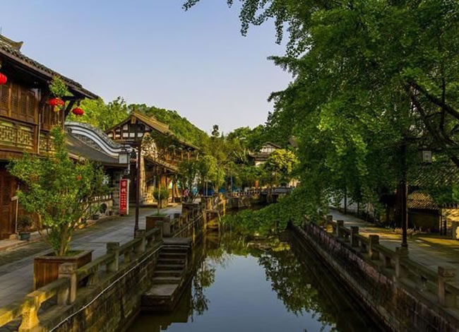 岷江的支流味江流經(jīng)地勢(shì)平緩的街子鎮(zhèn)口,形成一泓碧潭——龍?zhí)?。古?zhèn)水系發(fā)達(dá),地下水豐富,石板路兩側(cè)及屋前院后,常年清水不斷,因而有“川西水鄉(xiāng)”之名。“青城后花園”之稱(chēng)。景區(qū)屬亞熱帶濕潤(rùn)氣候,年平均氣溫15.9℃,盛夏氣溫低于成都市區(qū)4—5℃,全年均適宜旅游。