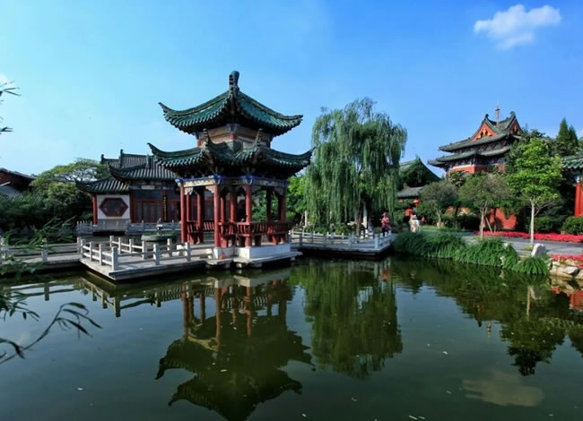 中餐后游覽中原園林美化之精品——【天波楊府】(游覽時(shí)間2小時(shí)左右),是為紀(jì)念北宋愛國名將楊業(yè)而恢復(fù)的宋代古建筑群,因位于京城西北隅天波門的金水河旁,故名天波楊府。它,體現(xiàn)了時(shí)代的完美情趣,堪稱中原園林美化之精品。置身天波,一步一景,目睹人工巧奪的奇山秀水,耳聞楊家滿門忠烈抗侵略感人涕下的動(dòng)人故事,敬意油然生成。后參觀 “開封人的待客廳” 【小宋城】 ,自費(fèi)品嘗河南小吃。整體以木質(zhì)仿古建筑為主,回廊流水,亭臺(tái)樓榭及戲臺(tái)上傳出的傳統(tǒng)戲曲演唱聲,仿佛瞬間把人帶回了質(zhì)樸又輕緩的北宋時(shí)代。抬起頭,房頂噴繪的藍(lán)天白云,加上周圍小吃攤販身上重點(diǎn)推薦:(開封灌湯包子、鍋貼、炒涼粉),游覽結(jié)束后入住酒店,入住后還可自由活動(dòng)參觀有千年傳承的鼓樓夜市。