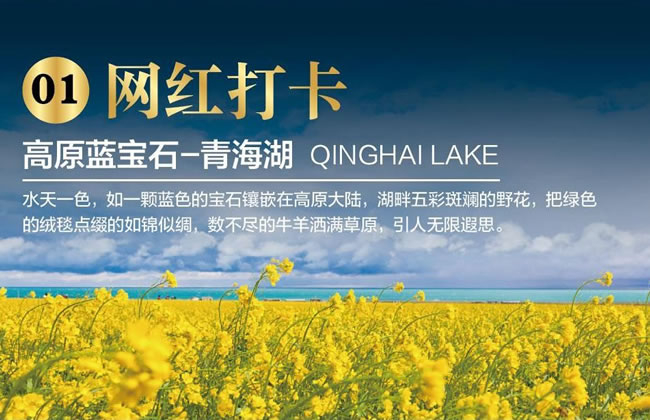 早餐后乘車前往【茶卡鹽湖】(含門(mén)票,不含小火車,游覽不低于3小時(shí))茶卡鹽湖,中國(guó)的天空之鏡。風(fēng)光旖旎,景色優(yōu)美。當(dāng)你踏入茶卡鹽湖的那一刻,就仿佛進(jìn)入了一個(gè)夢(mèng)幻般的世界。只見(jiàn)湖面平靜如鏡,將天空、云朵、山巒、樹(shù)木倒映其中,形成了一幅獨(dú)特的水天相接的畫(huà)面。這里的鹽層晶瑩剔透,泛著白光,宛如一面巨大的鏡子,將周圍的一切都映照得清晰可見(jiàn)。漫步湖面如行走在云端之上。茶卡鹽湖是古絲綢之路的重要站點(diǎn),歷史上是商賈、游客進(jìn)疆入藏的必經(jīng)之地。湖面上,時(shí)而碧波蕩漾,時(shí)而有莽莽蒼蒼,集秀麗、壯美于一體,在那里時(shí)仿佛靜止般,天地間是一片純凈的白與藍(lán),就像做了一場(chǎng)幻境的夢(mèng)…這里被國(guó)家旅游地理雜志評(píng)為“人一生必去的55個(gè)地方之一”。贈(zèng)送參觀青海高原藏寨(免費(fèi)景點(diǎn),游覽時(shí)間不低于1小時(shí))村寨內(nèi)外到處都是飄揚(yáng)的經(jīng)幡,領(lǐng)略藏族的風(fēng)土人情,體會(huì)藏族文化的魅力。此為贈(zèng)送項(xiàng)目,若因客觀原因(例如關(guān)閉修整、時(shí)間、天氣、道路擁堵等因素)造成無(wú)法參觀的,則不退任何費(fèi)用。參觀中國(guó)最美的五大湖泊之首高原明珠—【青海湖二郎劍】(含門(mén)票,不含電瓶車,不含游船,游覽不低于2小時(shí))青海湖是我國(guó)第一大內(nèi)陸湖泊,也是我國(guó)最大的咸水湖。湖面純凈深湛、溫柔恬雅的湖水,滿載著古老而優(yōu)美的傳說(shuō),夾帶著文成公主的相思,是如此的波瀾壯闊、恢宏磅礴,漫步清海湖畔,擁一抹晨曦在心,握一縷格桑花的明艷于手,不思前塵,不念過(guò)往,心中,只存世事通透的安然......在這里你可以欣賞的水天均呈現(xiàn)青藍(lán)一色,藍(lán)天白云映襯在湖中,水波蕩漾,海風(fēng)拂面,站在湖邊拍照,以天、湖、海岸為背影,沉醉高原的藍(lán)寶石,感受歲月如水時(shí)光靜好。從廣場(chǎng)走到湖邊處,青海湖就在眼前,沿湖邊木制棧道觀湖散步,有幸可看到湖面上的海鷗在天空翱翔。青海湖的美用再多的語(yǔ)言都是無(wú)法形容的,左邊蔚藍(lán)的湖水,遠(yuǎn)處茫茫草原,牛羊成群,徜徉其中,視野開(kāi)闊,景色優(yōu)美,給您一種心靈的釋放與洗滌。晚住青海湖沿線或西寧。