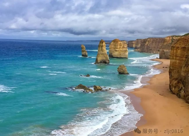 【十二門(mén)徒巖】它們是一組穿出南大洋水面巍然聳立的巨型巖石,是維多利亞州的著名景點(diǎn),每年吸引數(shù)以萬(wàn)計(jì)的 游客。大約形成于 2000 萬(wàn)年前,獨(dú)立于海天之間,遙遙相望,彼此呼應(yīng)。驚濤在它們的腳下翻卷著白色的浪花, 大團(tuán)大團(tuán)的白云在藍(lán)天上舒展,草原一望無(wú)盡,形成了極美無(wú)比的風(fēng)光。它是因造型與《圣經(jīng)》中的 12 門(mén)徒相似而 得名。 由于海浪的不斷沖擊,這些巖石柱也不能永遠(yuǎn)矗立, 目前門(mén)徒僅剩 7 塊。雖然現(xiàn)有的門(mén)徒石在減少,不過(guò)新 的也在不斷孕育之中。